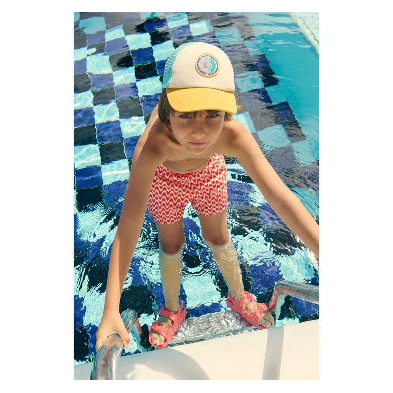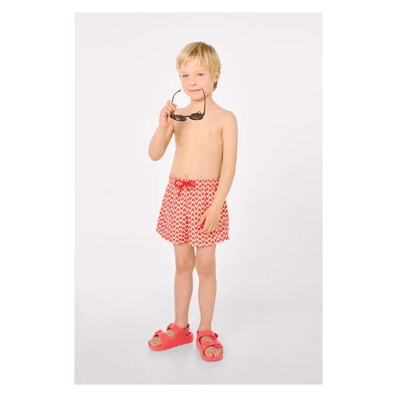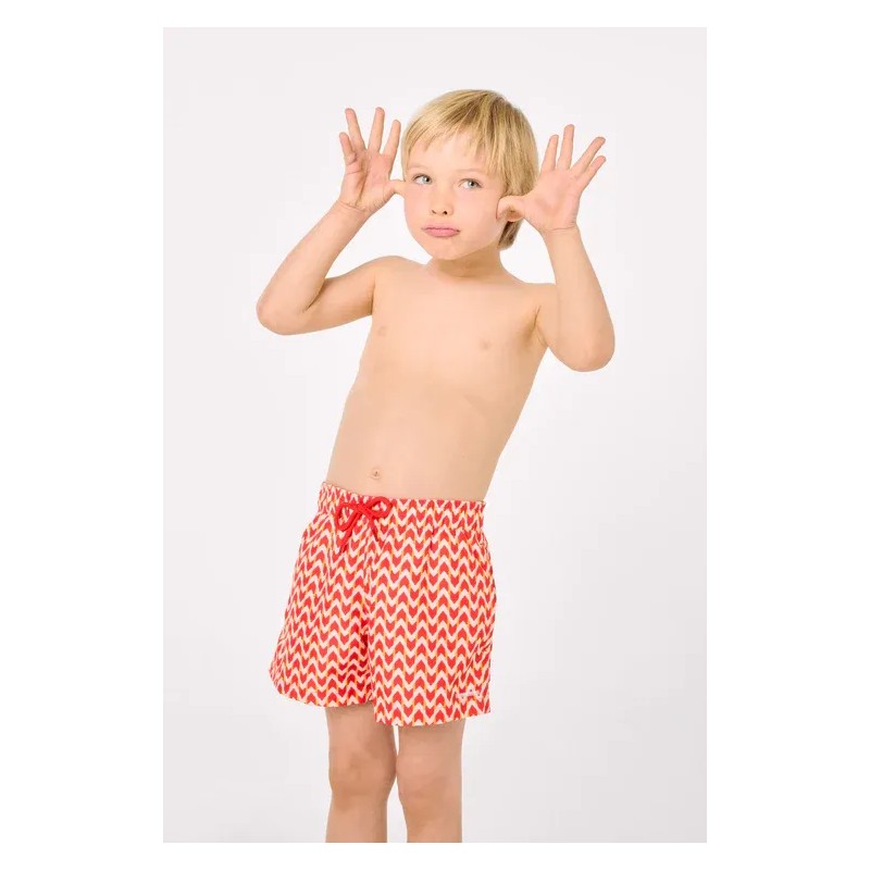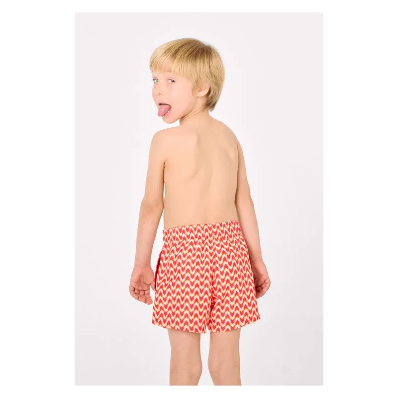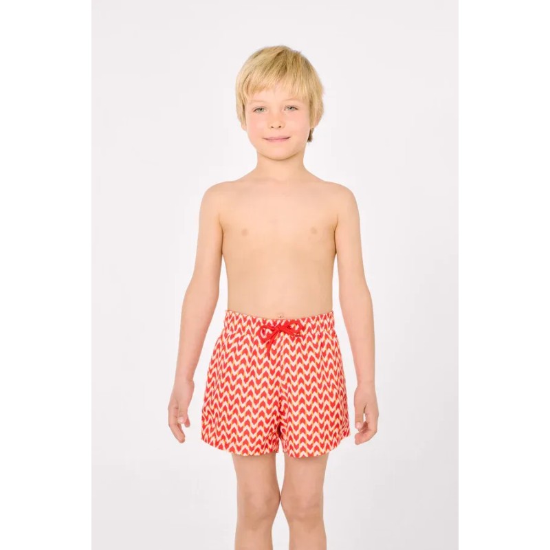 Bañador corto infantil con estampado étnico. Diseño con bolsillos laterales y tejido de secado rápido. Es un modelo de la línea Family Match , lo que permite combinarlo con el resto de la familia.