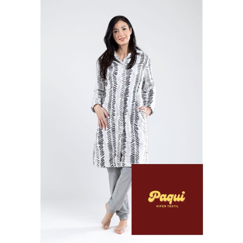 Bata polar de señora 2921 con cierre de botones que aporta abrigo y confort gracias a su tejido de coralina muy suave que no pesa cuando la llevas puesta. Estampado con franjas de trazos verticales