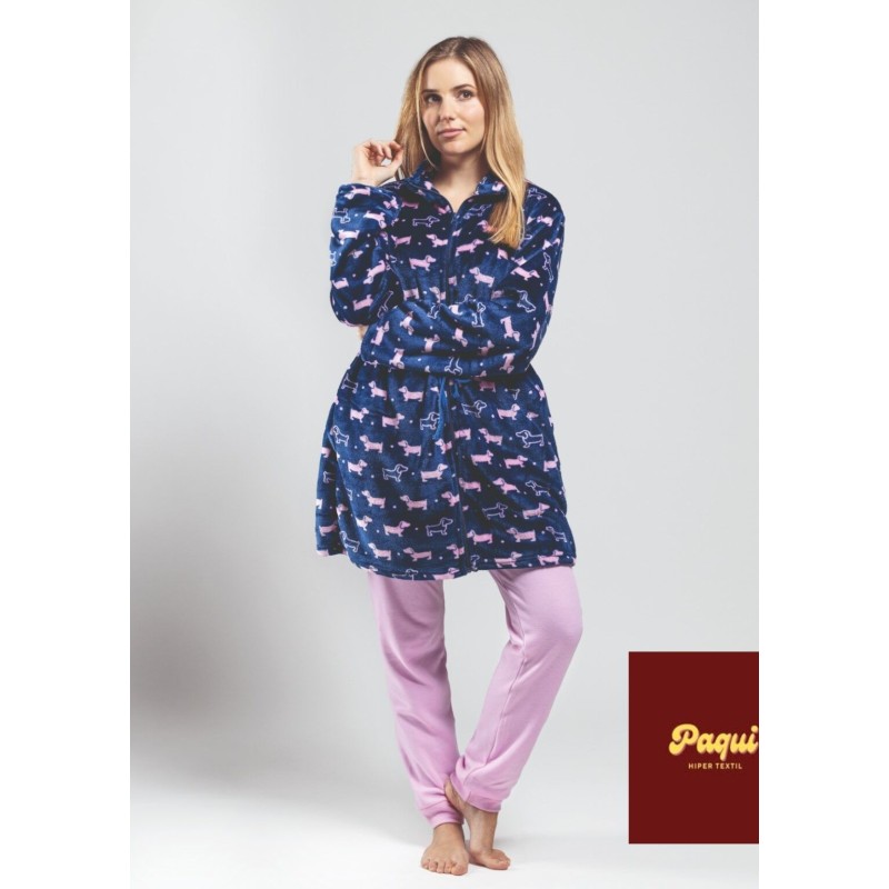 Bata mujer invierno corta 2791 con cremallera y tejido super suave de coralina, mullida y de abrigo que no pesa, con estampado de perritos. Una bata de casa corta, moderna, bonita y cálida que te aportará un confort magnífico.