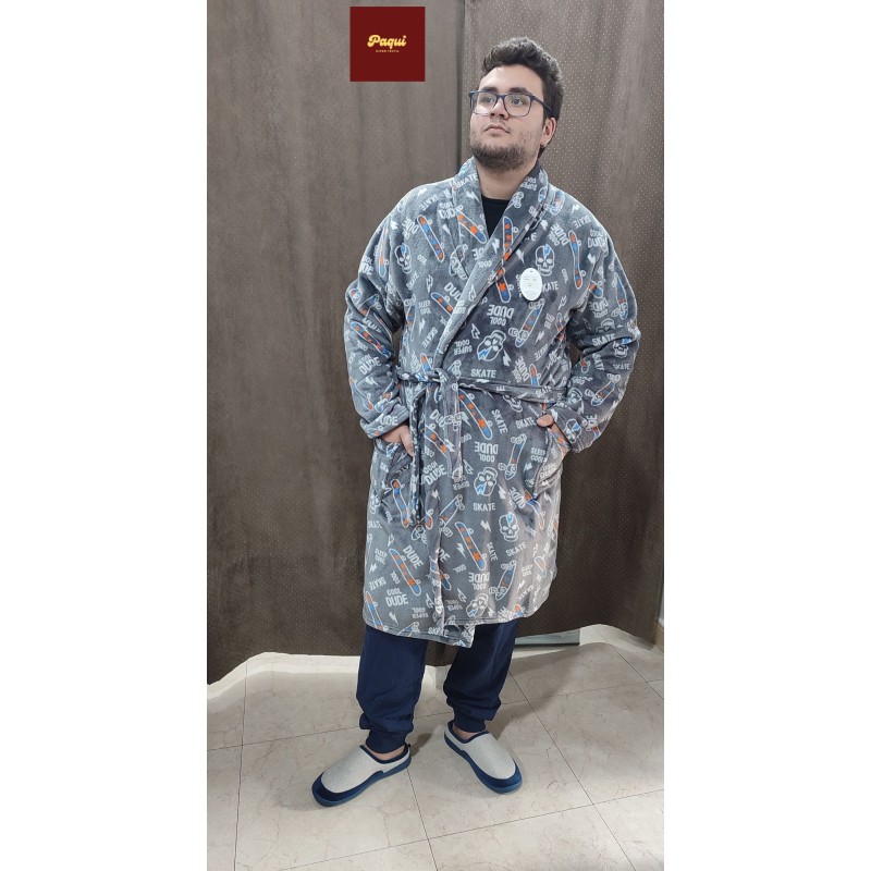 Bata de casa hombre estampada ,largo hasta la rodilla con bolsillos de tapeta.