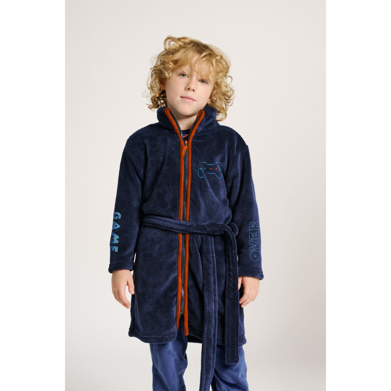 Esta bata de invierno para niño MDM, combina comodidad, estilo y funcionalidad para los días más fríos. Confeccionada en coralina  extrasuave, ofrece una sensación cálida y envolvente ideal para estar en casa. Su diseño moderno incluye cuello alto, cremallera frontal en contraste naranja, bolsillos laterales y el bordado "gaymer" en el pecho  junto a un bordado en cada manga, que aporta un toque distintivo y actual.