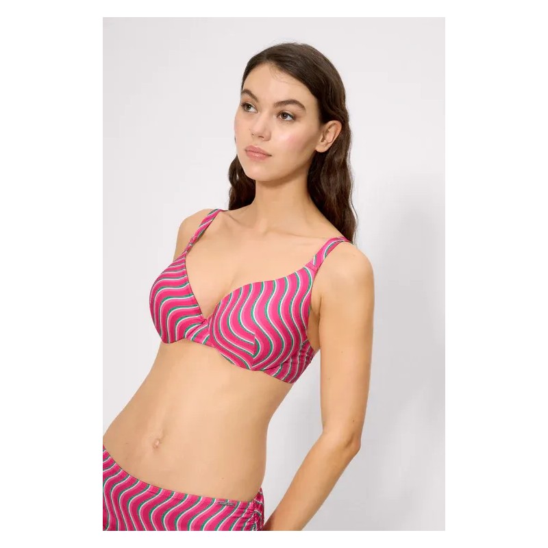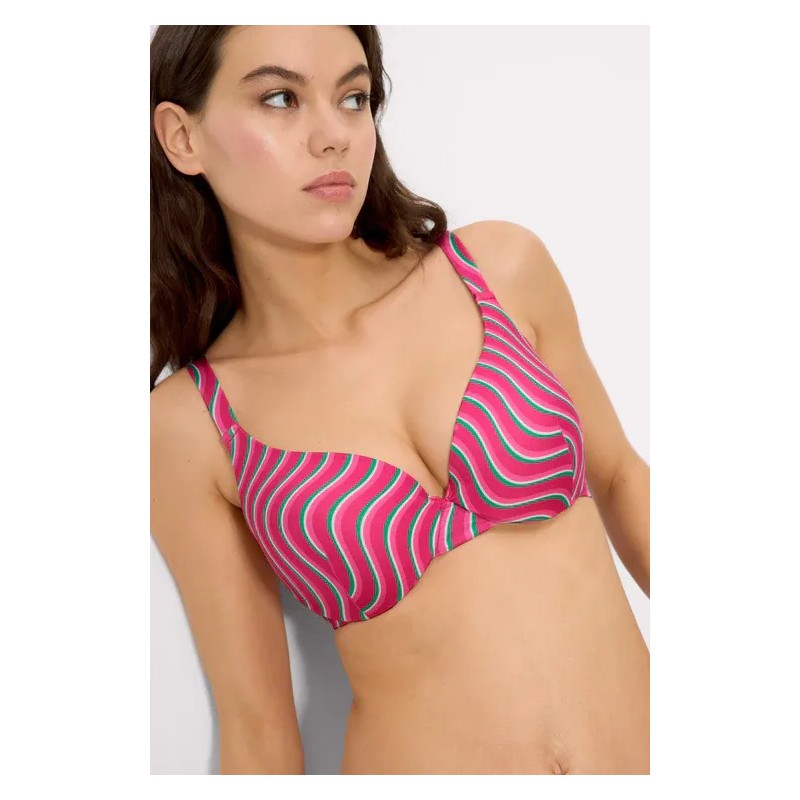 Top bikini con aro con rellenoTirantes anchos regulables. Estampado vibrante de ondas. Combínalo con una braga de bikini a conjunto para un look completo.