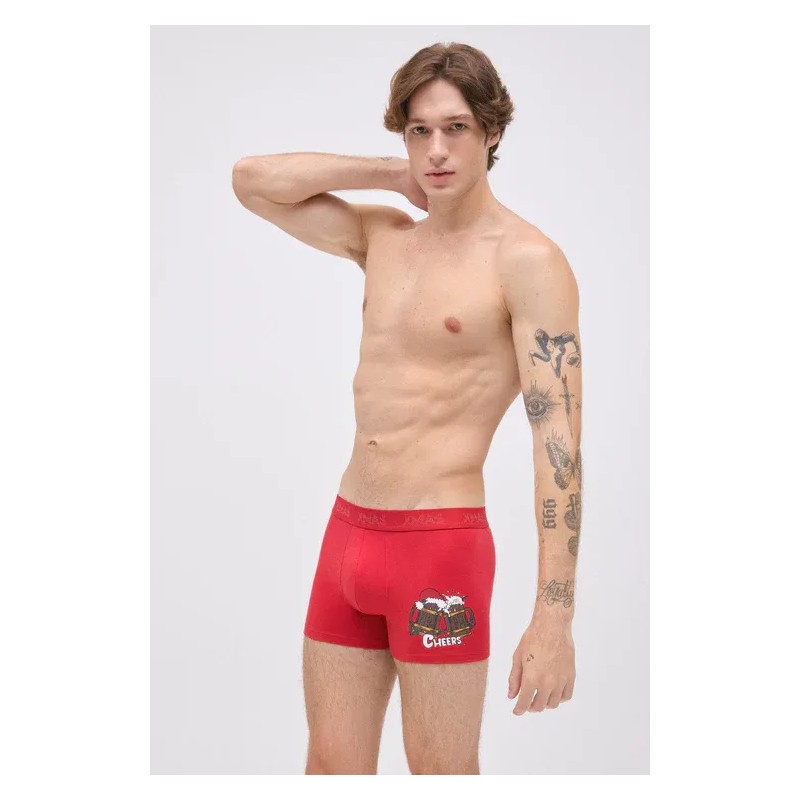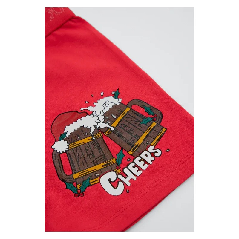 ¡Navidad con humor! Peparado para celebrar las fiestas con comodidad… ¡y buen rollo! Confeccionado en un tejido suave y elástico, se adapta perfectamente al cuerpo. Su divertido estampado con dos jarras de cerveza brindando bajo un gorro de Papá Noel y el mensaje “Cheers” le da ese toque festivo y original que no puede faltar estas navidades.