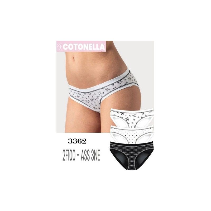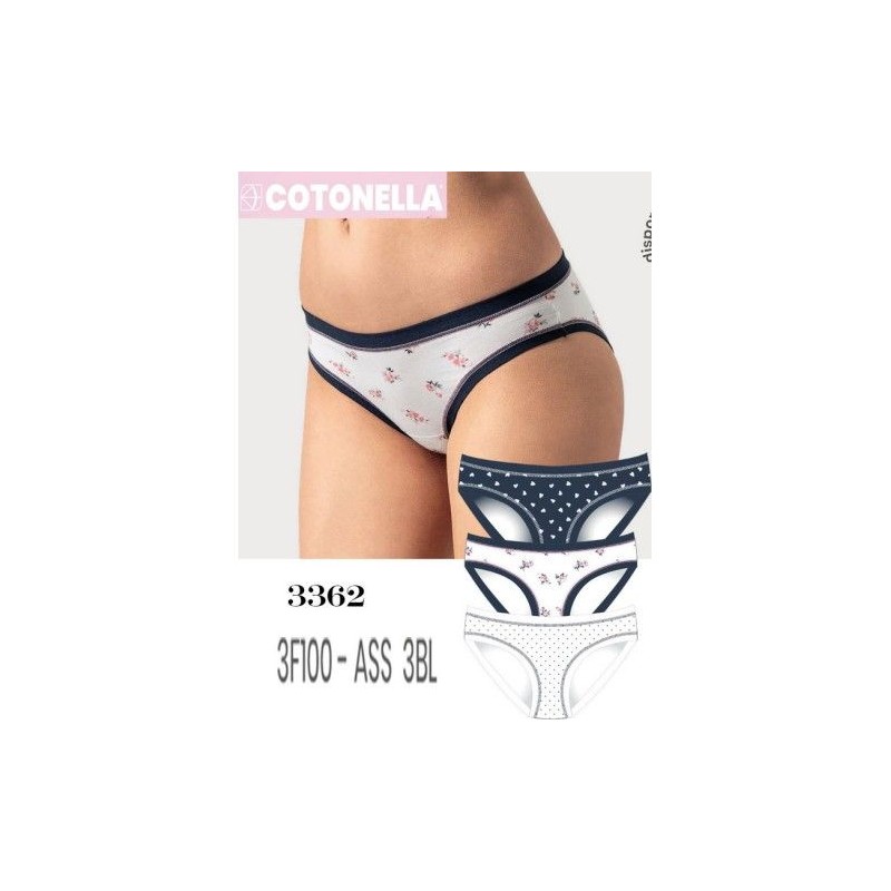 3 mini bragas Cotonella de  mujer algodón elástico, Art. 3362 Composición 90% algodón 10% elastano. Calidad garantizada algodón