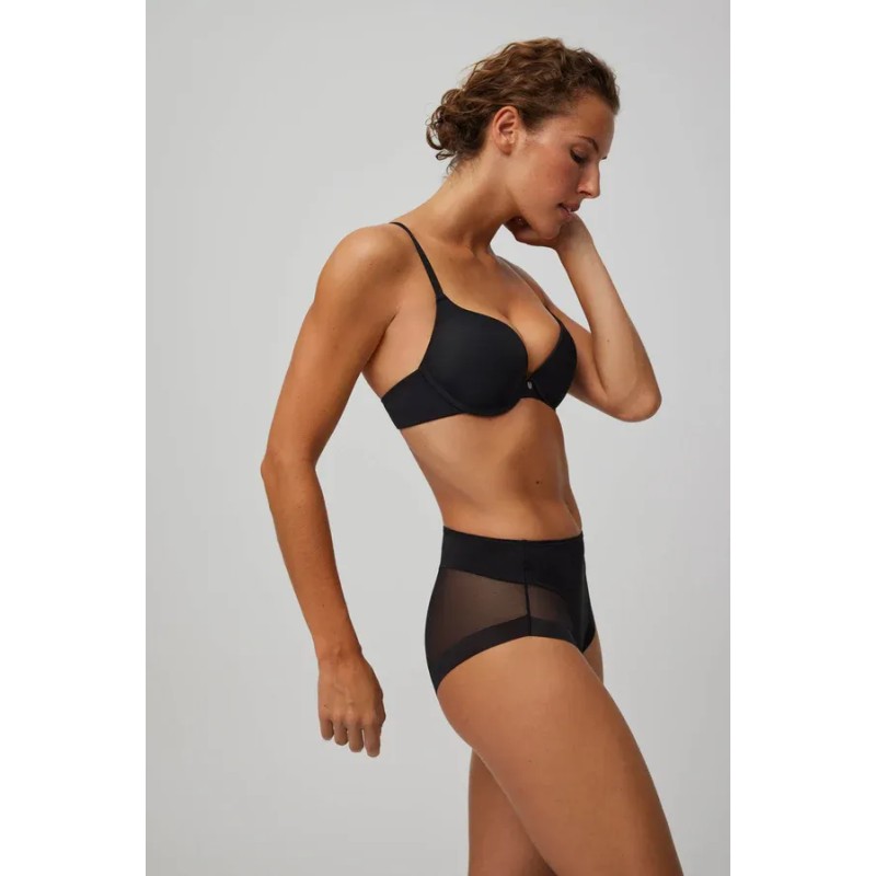Un tejido invisible elástico que abraza suavemente tus curvas, garantizando un ajuste perfecto que se adapta a cada movimiento. Esta braga alta no es solo un logro de la ingeniería textil. Se trata de un clásico reinventado con un toque moderno y femenino, brindando un soporte adicional y una silueta estilizada.