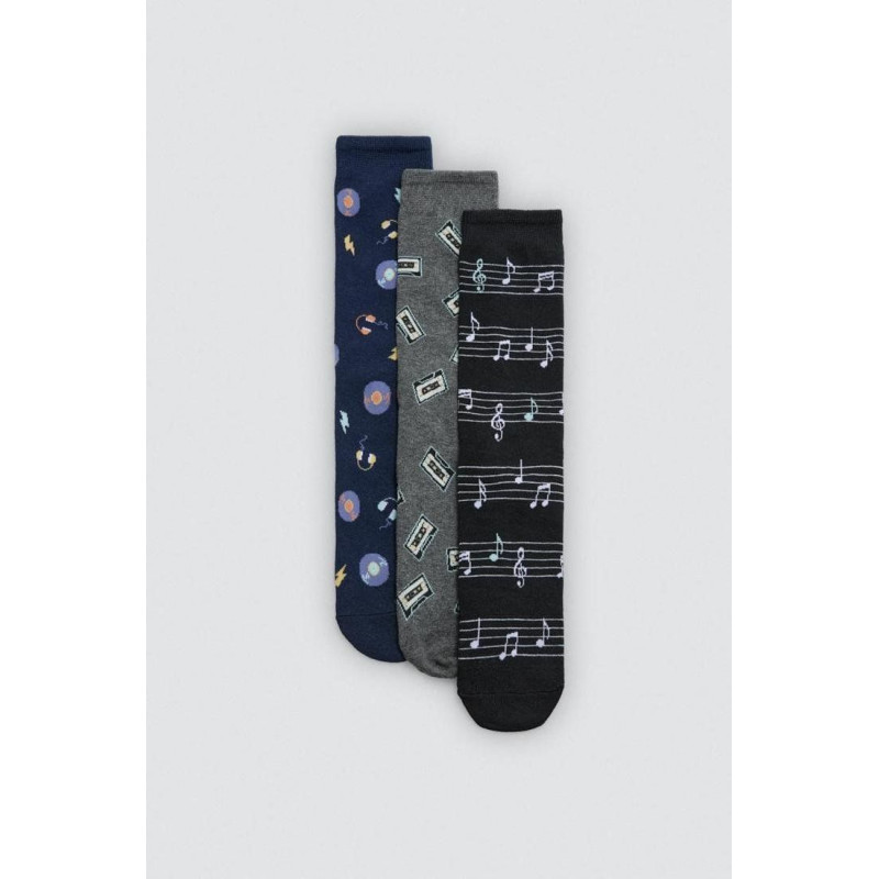 Pack para regalo de 3 calcetines con estampado musical para hombre con puño antipresión.