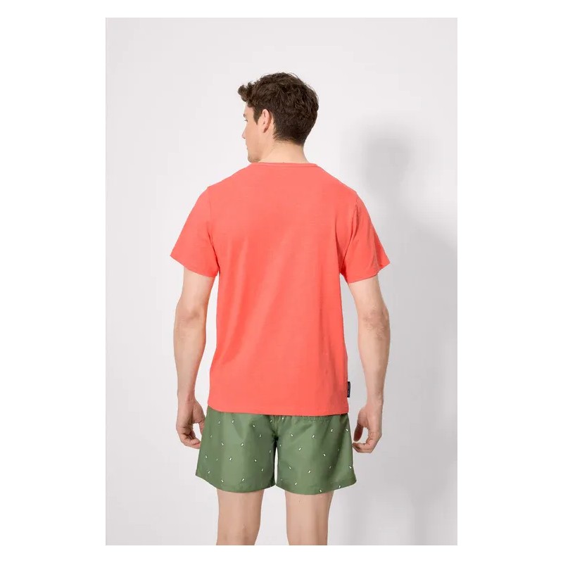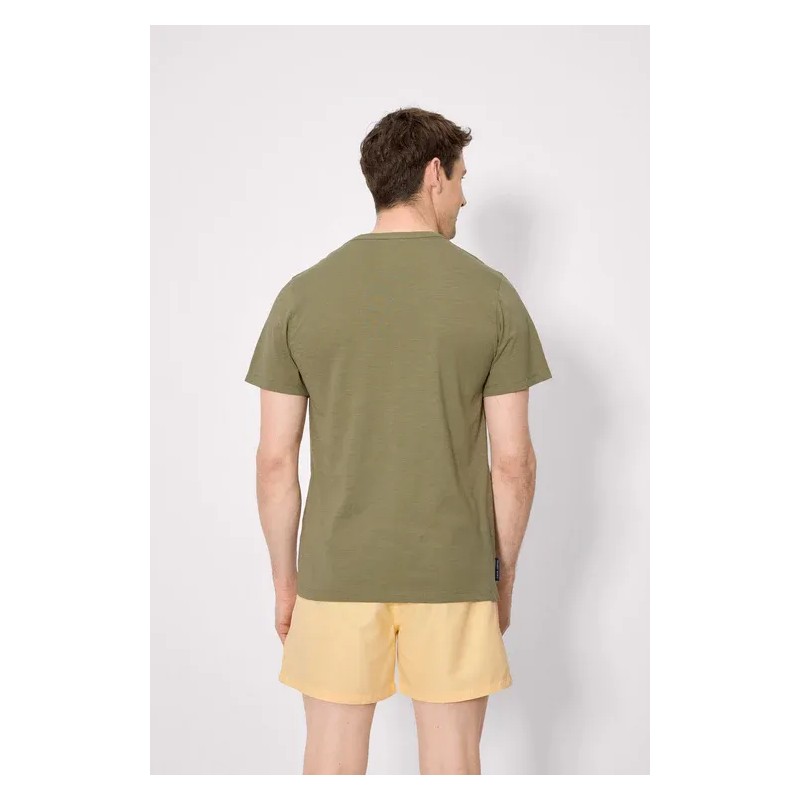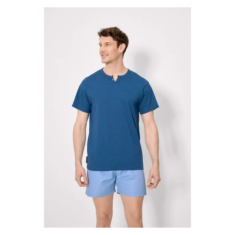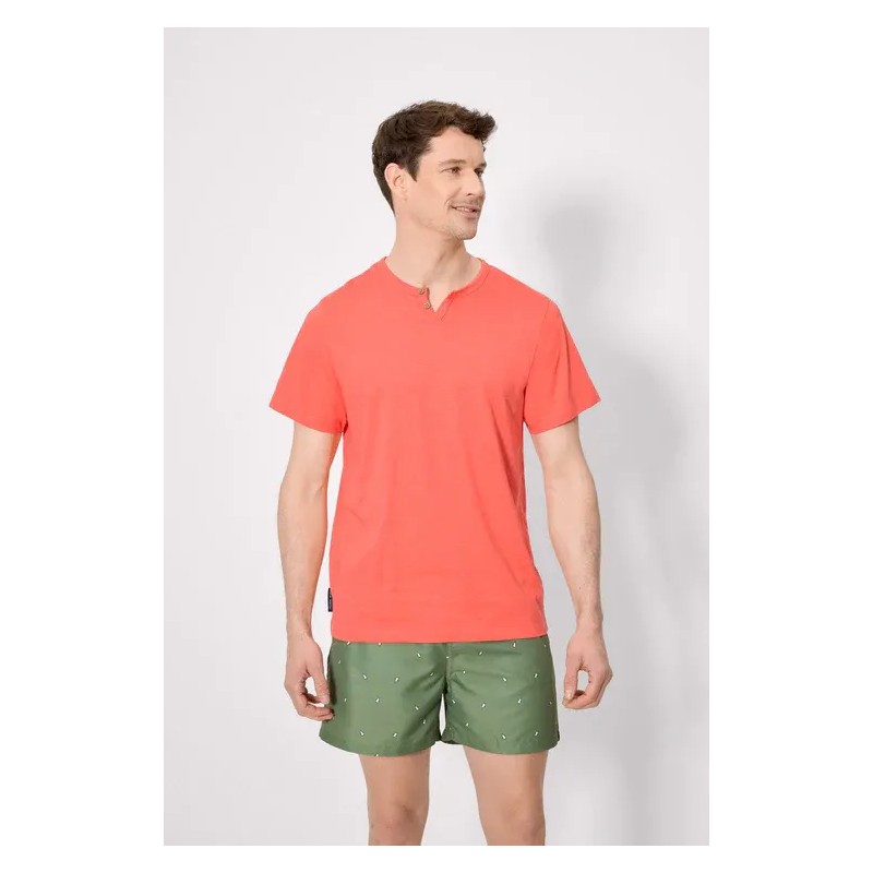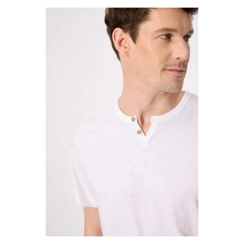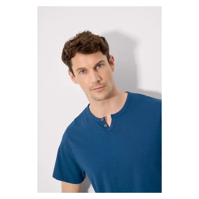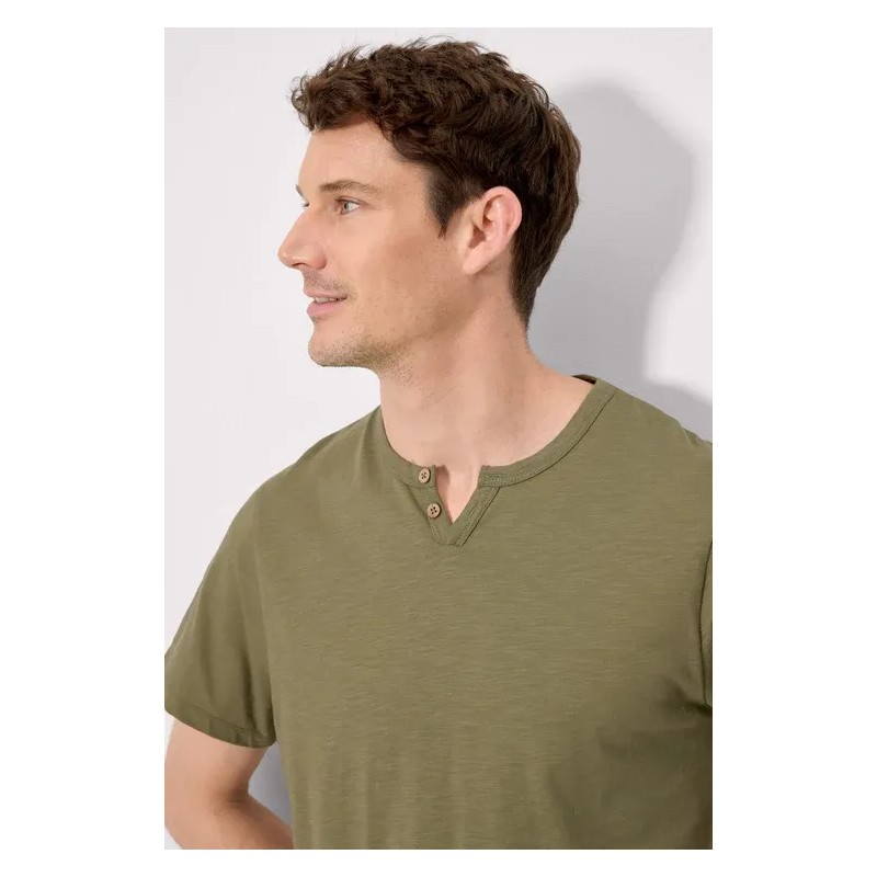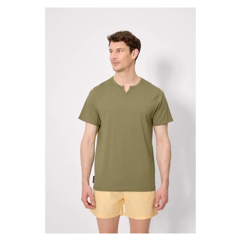 Camiseta básica con cuello panadero para hombre de manga corta. Tiene un corte regular fit y está fabricada con algodón natural, siendo extrasuave y transpirable para su uso diario.