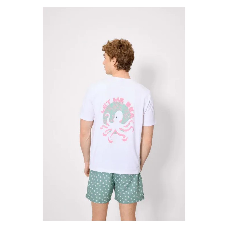 Camiseta para hombre con manga corta Let me sea. Tiene un corte regular fit y detalles en relieve. Fabricada con algodón natural, siendo extrasuave y transpirable para su uso diario.