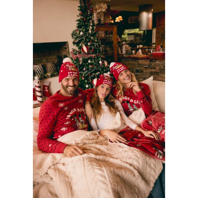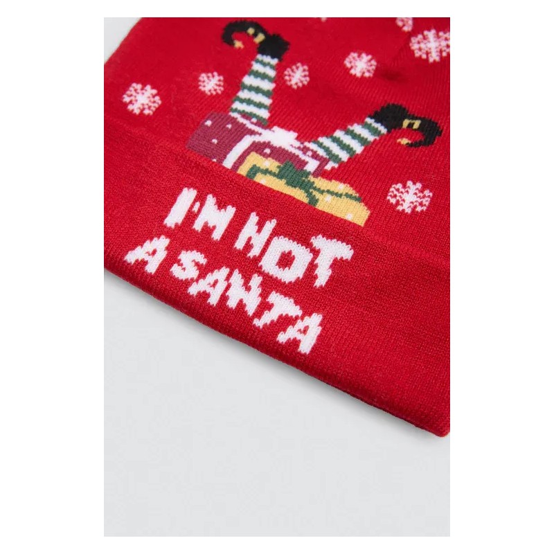 Este gorro navideño de adulto es perfecto para añadir un toque de humor a tus looks invernales. De color rojo intenso, con copos de nieve, regalos y unas piernas de elfo estampadas, remata con la frase “I’m not a Santa” y un pompón blanco que lo hace aún más divertido. Ideal para celebraciones, fotos navideñas o simplemente para contagiar espíritu festivo allá donde vayas.