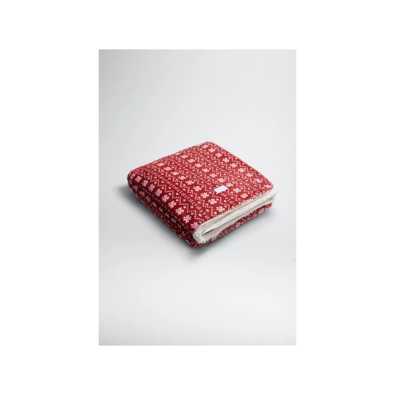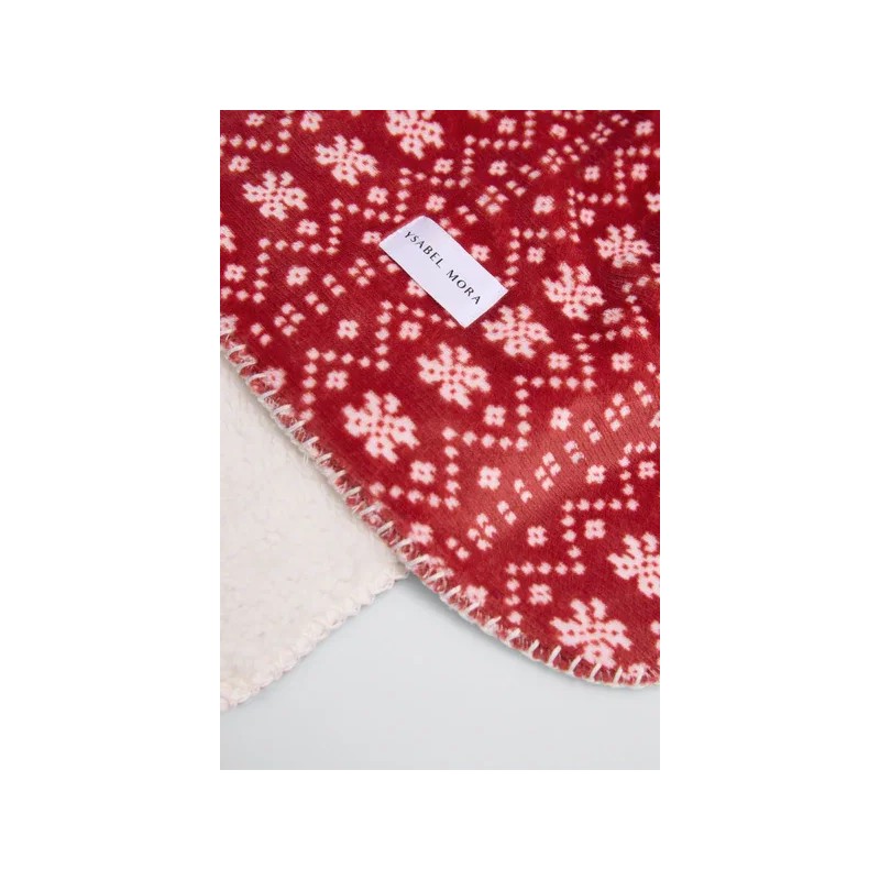 Esta manta doble de inspiración invernal es perfecta para disfrutar del confort en casa con un estilo cálido y atemporal. Su cara exterior presenta un elegante estampado tipo jacquard en tonos rojos y blancos, mientras que el interior está forrado con un suave y acogedor borreguito que proporciona abrigo y bienestar. Ideal para el sofá, la cama o cualquier rincón donde quieras relajarte.