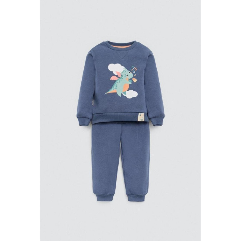 Conjunto para bebé de manga larga y cinturilla ajustable con interior afelpado. Modelo con un estampado divertido de dinosaurio.