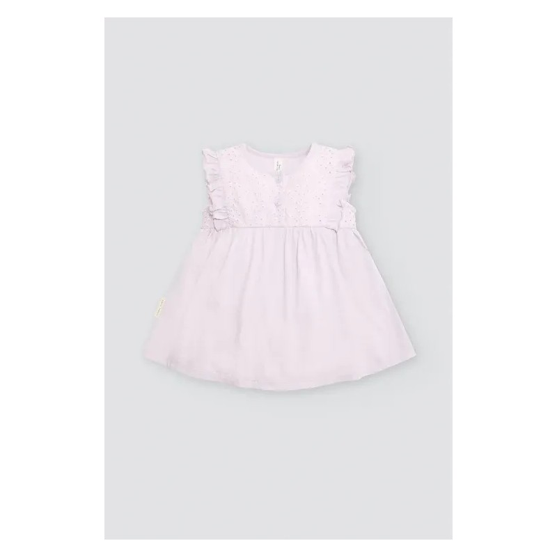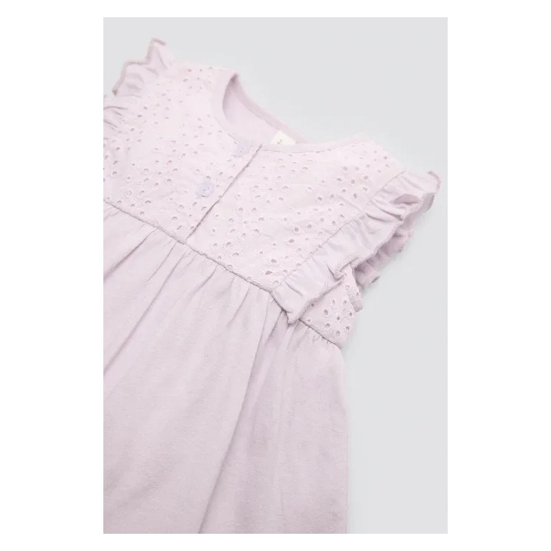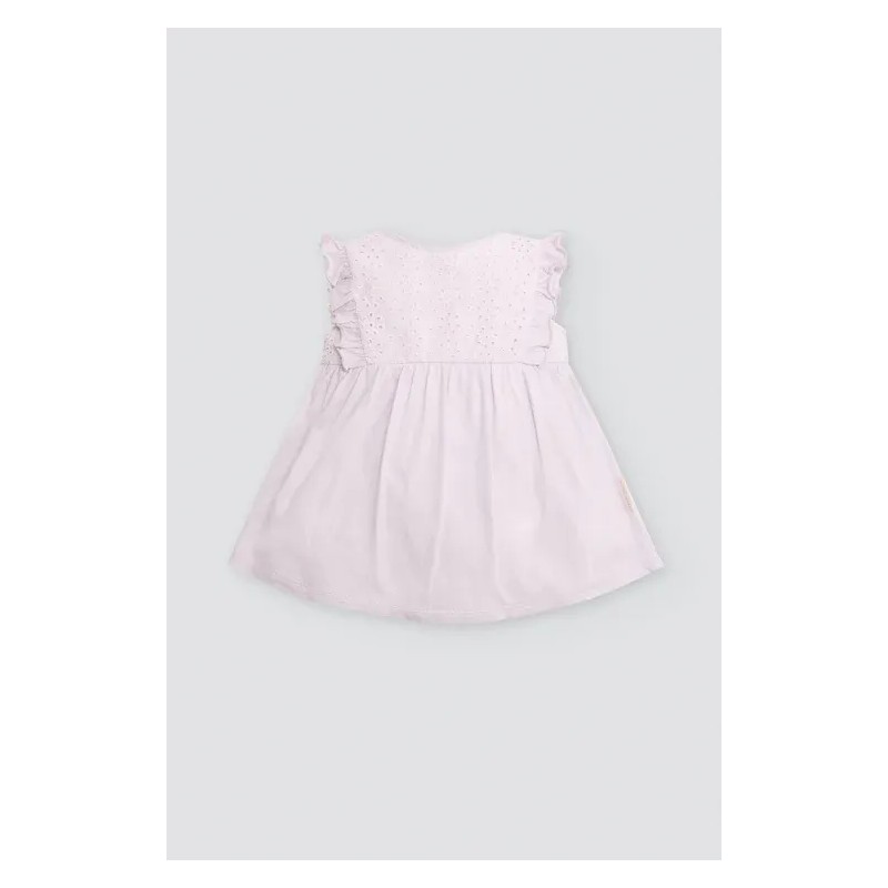 Encantador vestido body sin mangas para bebé. Fabricado en algodón liso, incorpora detalles de volantes que aportan un estilo dulce.