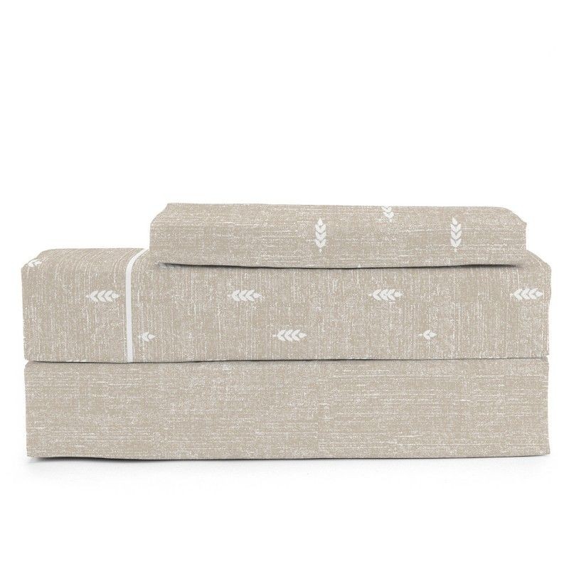 Juego de sábanas con sutil estampado minimalista que aporta calidez y estilo al dormitorio. Elaborado en tejido suave y transpirable para un descanso confortable, con acabado resistente y fácil cuidado. Ideal para quienes buscan practicidad sin renunciar al diseño.