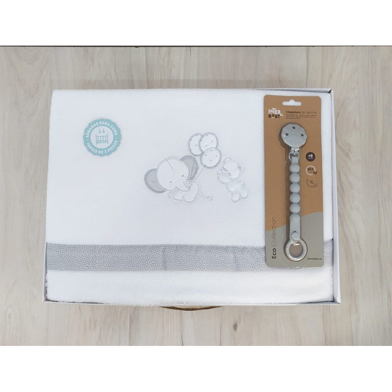 Si estás buscando un juego de sábanas que sea bonito, práctico y delicado con la piel de tu peque, el modelo Pasacinta Oso Elefante Globos de Interbaby en color blanco/gris es todo un acierto. Este conjunto de 3 piezas es puro mimo: está hecho de 100% algodón extrasuave, perfecto para asegurar un descanso cómodo, seguro y muy dulce