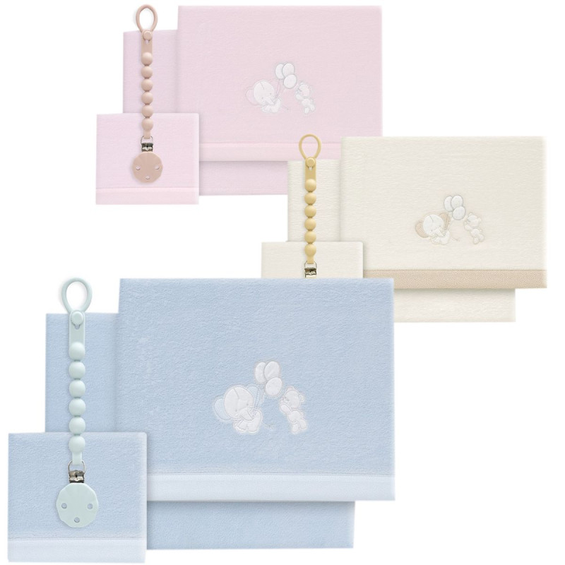 JUEGO SABANAS Cuna + BROCHE Pasacinta Oso Elefante Globos REF.3334