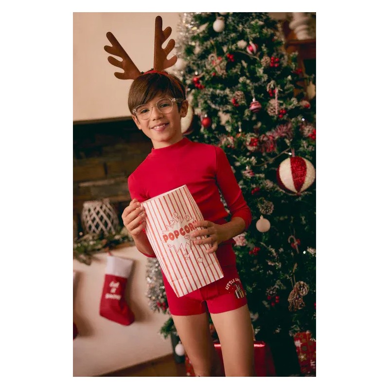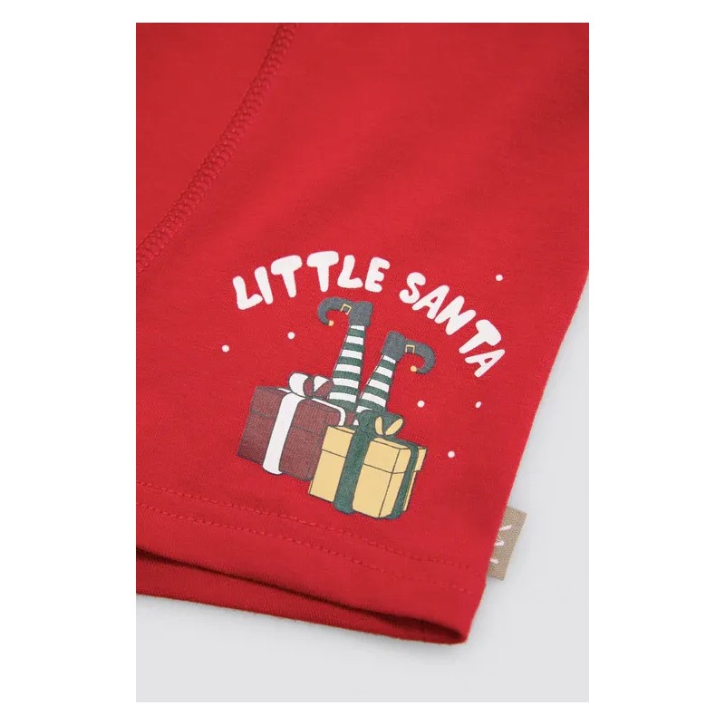 Este bóxer infantil en algodón natural es tan cómodo como divertido. Con un diseño navideño alegre y colorido, incluye un simpático estampado de regalos y piernas de elfo con el mensaje “Little Santa”. Perfecto para que los peques disfruten de la Navidad con total comodidad.