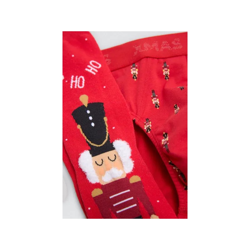 Este pack de Navidad para hombre incluye un slip cómodo y unos calcetines a juego, ambos con un divertido y elegante estampado del clásico Cascanueces. Confeccionados en tejido suave y elástico, son la combinación perfecta entre comodidad y estilo festivo. Ideal para regalar… o para darte un capricho con mucho carácter navideño.