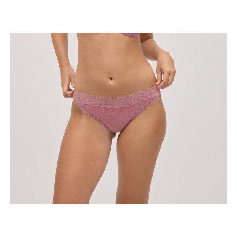 Sujetador de tejido canalé sin aro y con relleno. Detalle de ribete de encaje..
