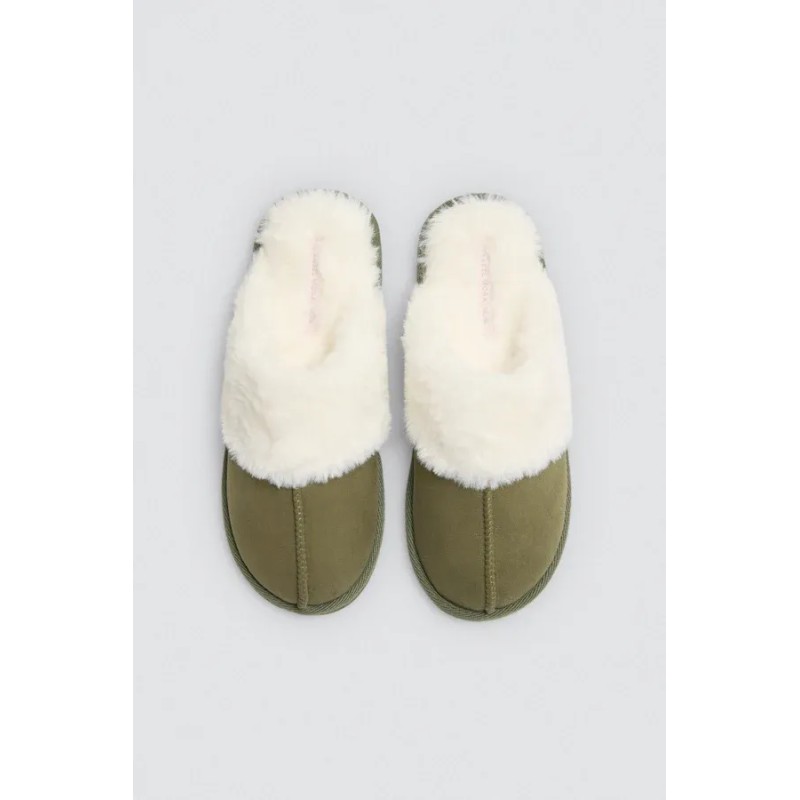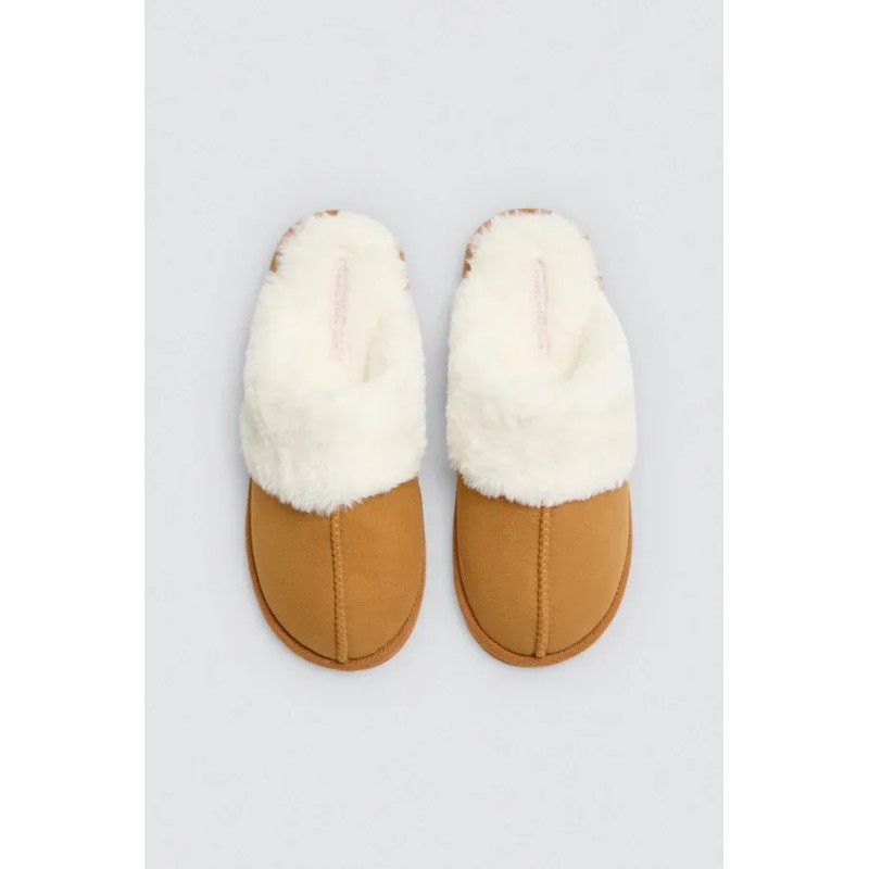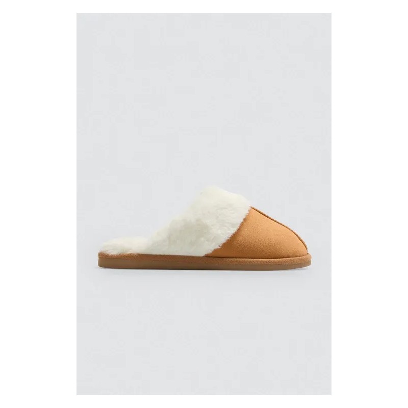 Zapatillas de casa con diseño cómodo y cálido, perfectas para mantener los pies abrigados en los días fríos. Confeccionadas con un exterior efecto ante suave y un forro interior de pelo, ofrecen una sensación de confort y suavidad al caminar. El borde de pelo en la parte superior aporta un toque elegante y acogedor.