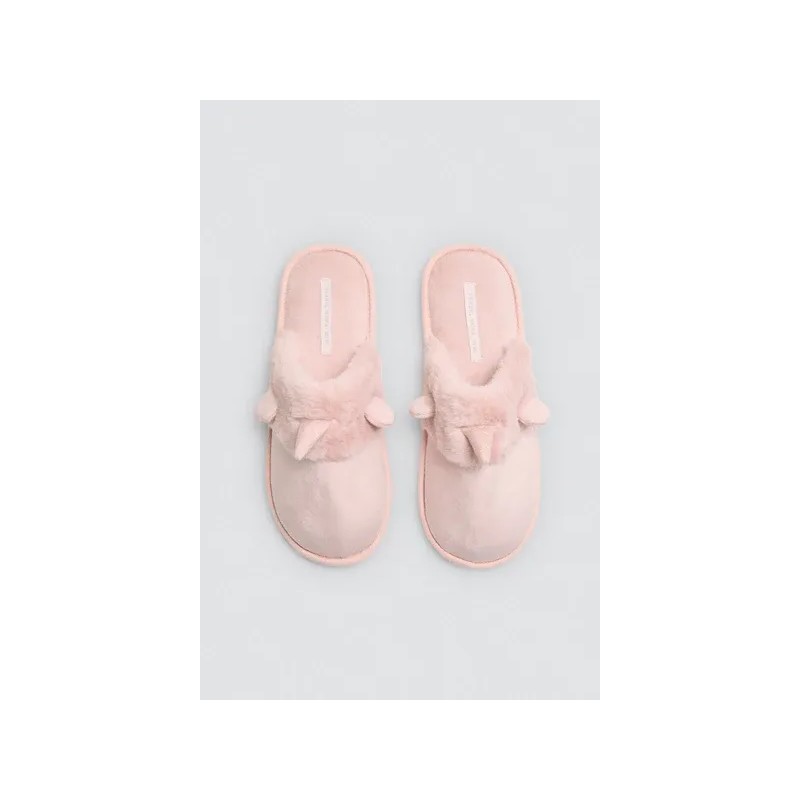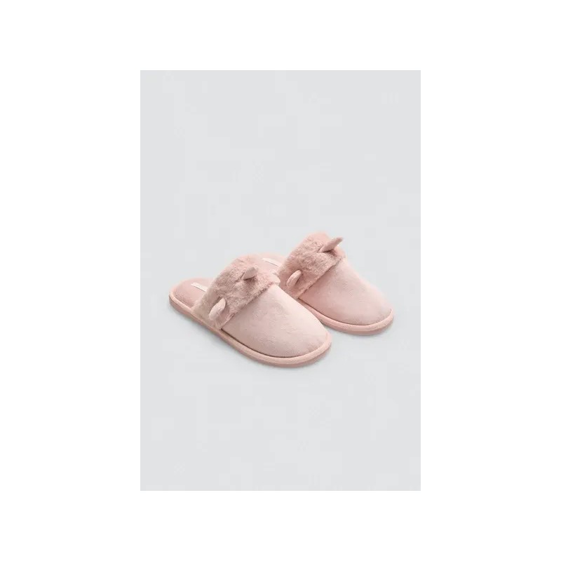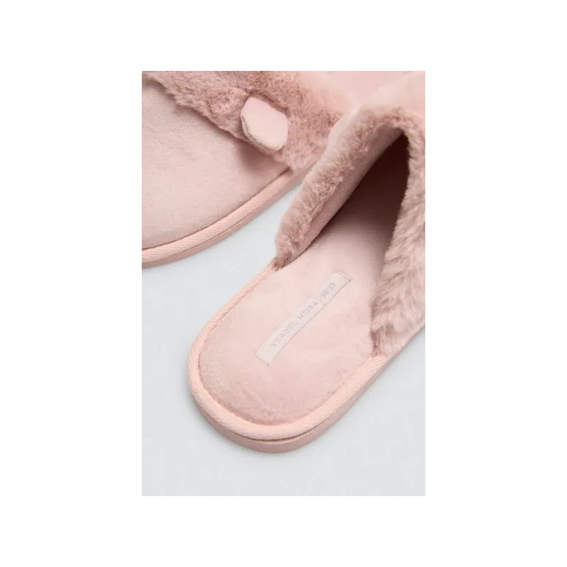 Estas zapatillas de casa de color rosa suave son la combinación perfecta entre confort y ternura. Con detalles de pelo en el borde y pequeñas "orejas" que dan un toque especial, son ideales para mantener tus pies abrigados y cómodos. Su diseño sencillo y femenino las convierte en un must para las tardes de relax.